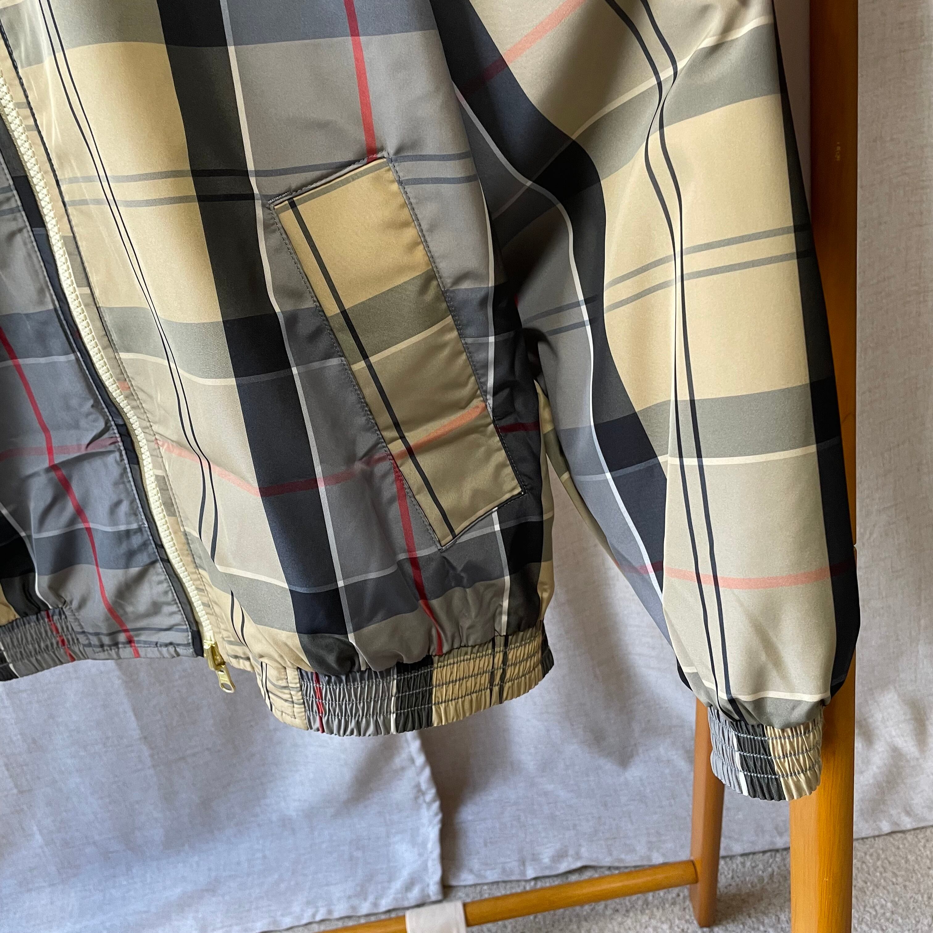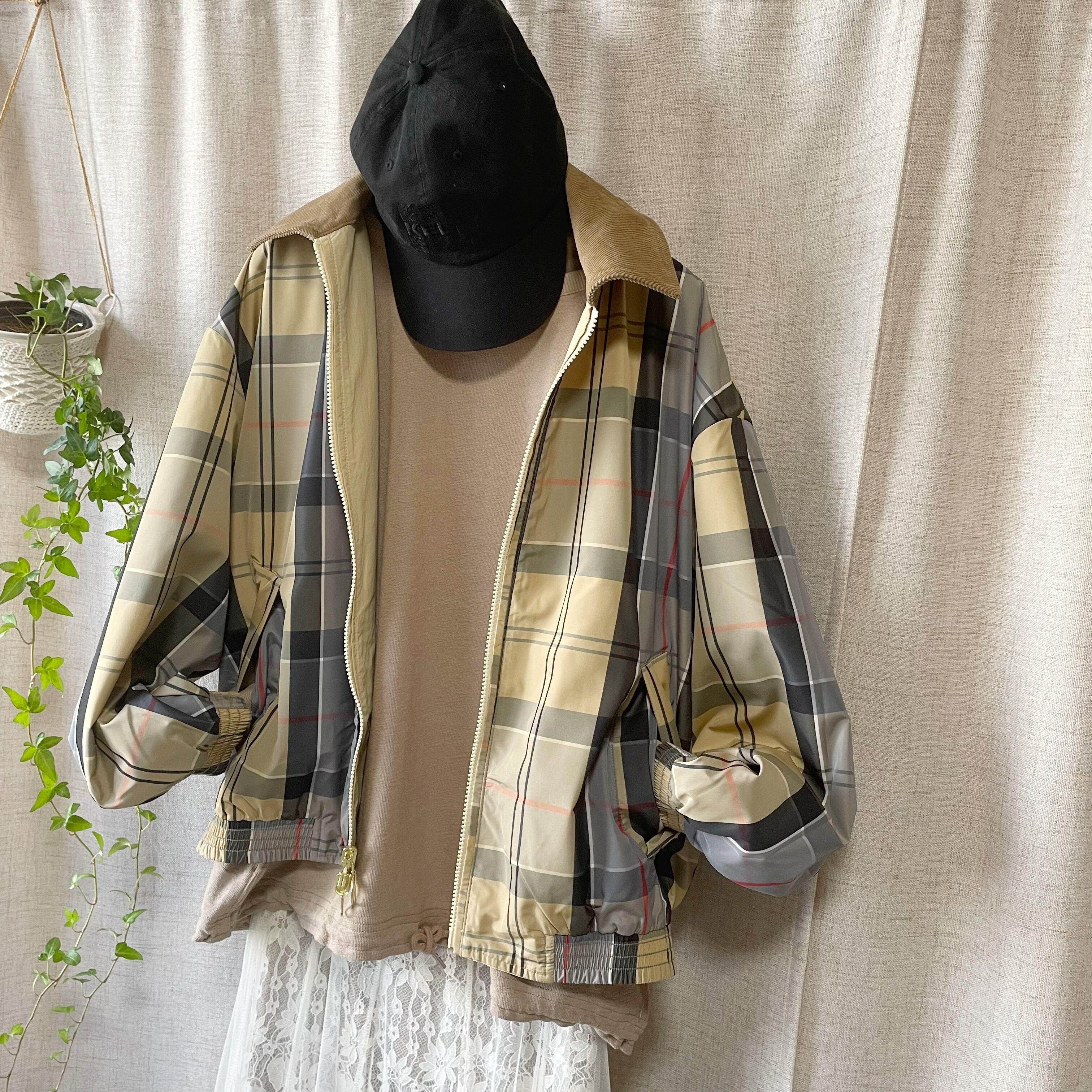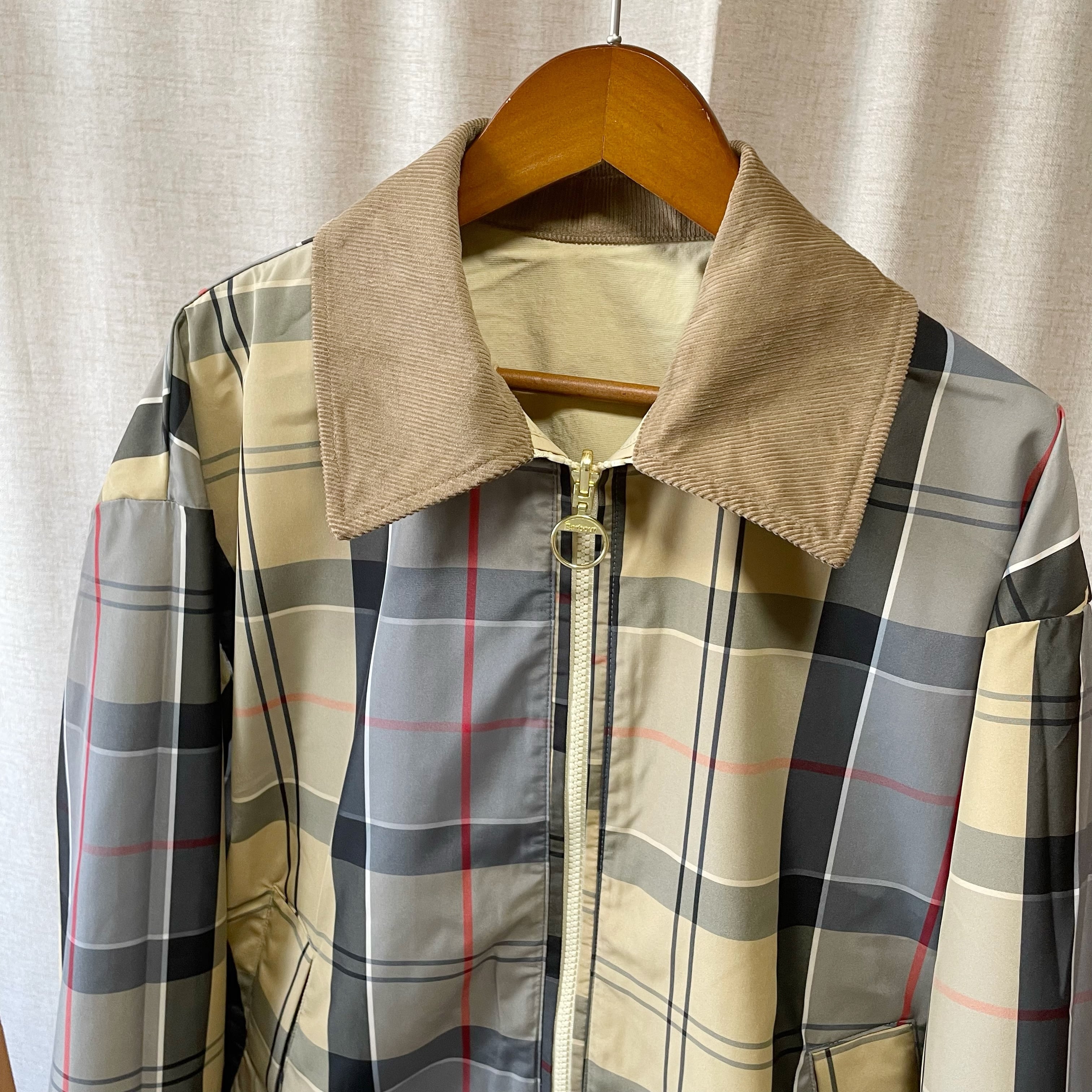 軽やかな風合いのコットンナイロン混紡素材の表地、タータンチェックの裏地付き