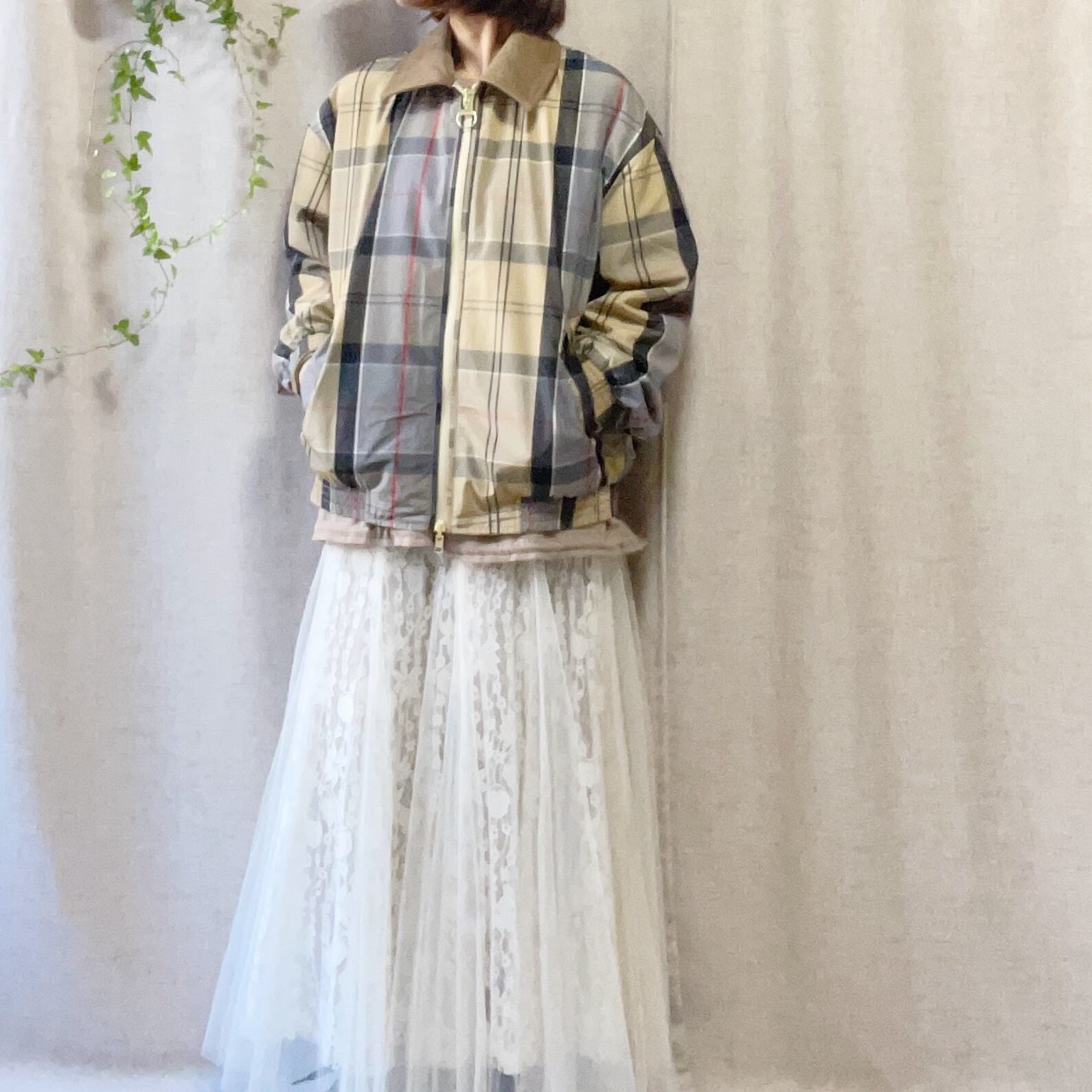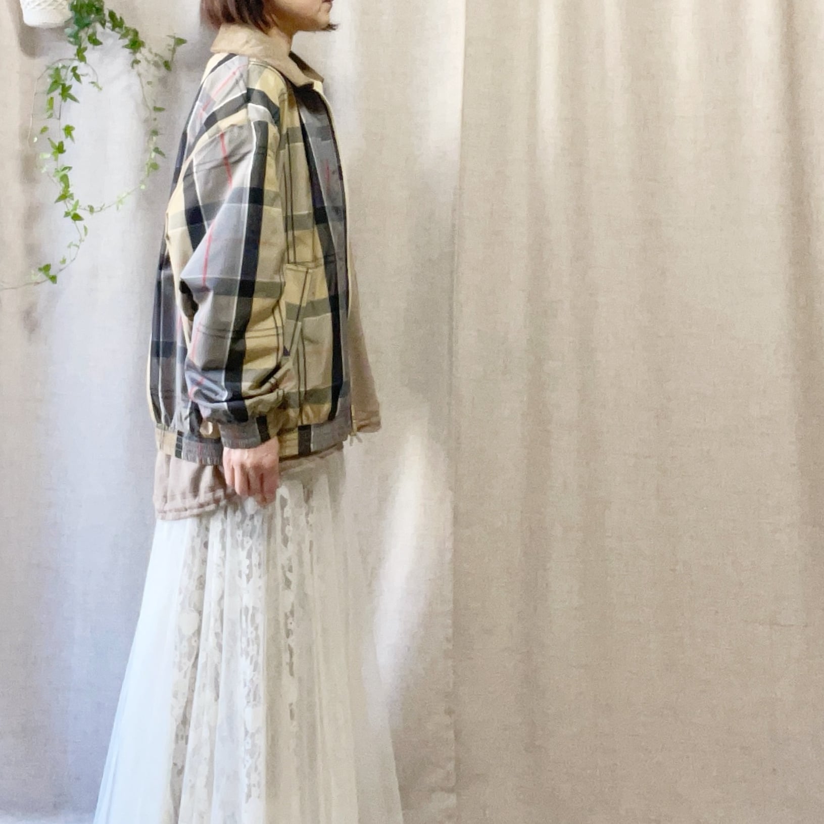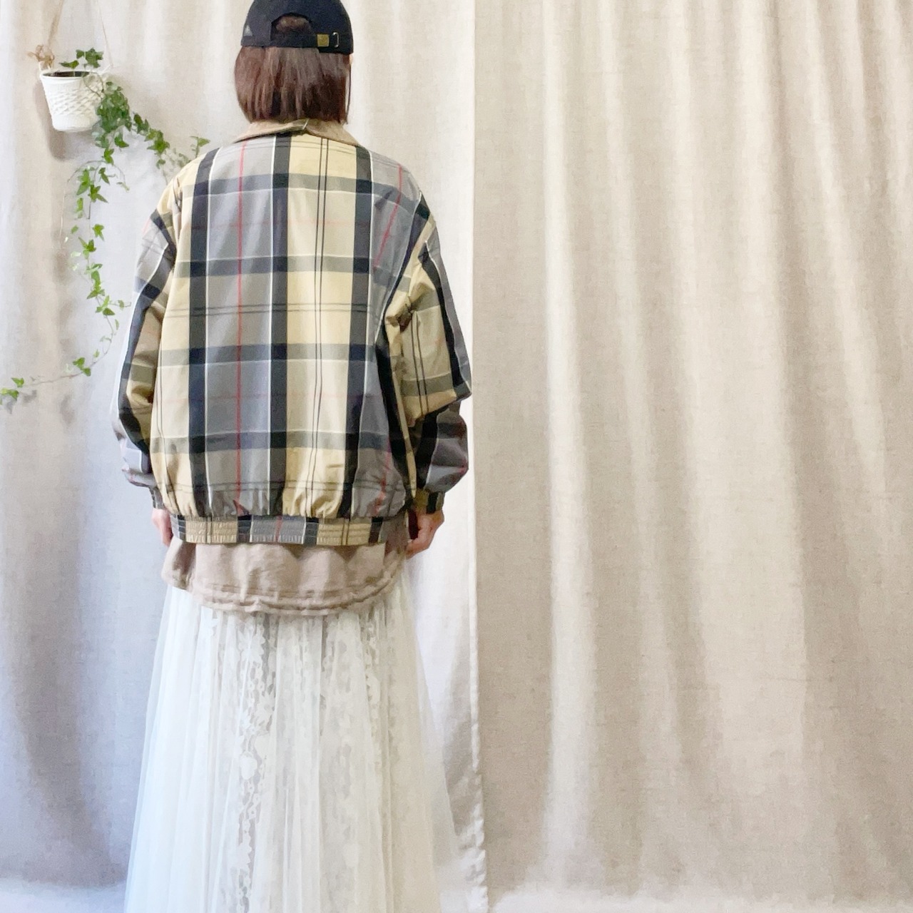 軽やかな風合いのコットンナイロン混紡素材の表地、タータンチェックの裏地付き