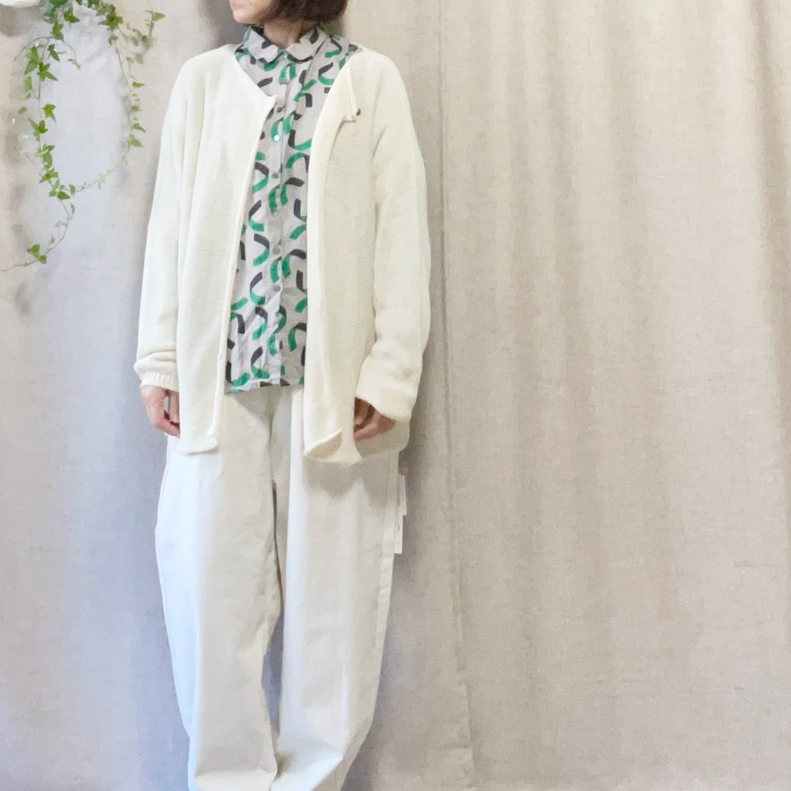 ヘンプコットンを使用し,ナチュラルな質感とドライな肌触りが特徴のカーディガン。和紙の素材を取り入れることで、さらりとした着心地を実現しました。シンプルながらも、独自の風合いがコーディネートに華を添えます。
