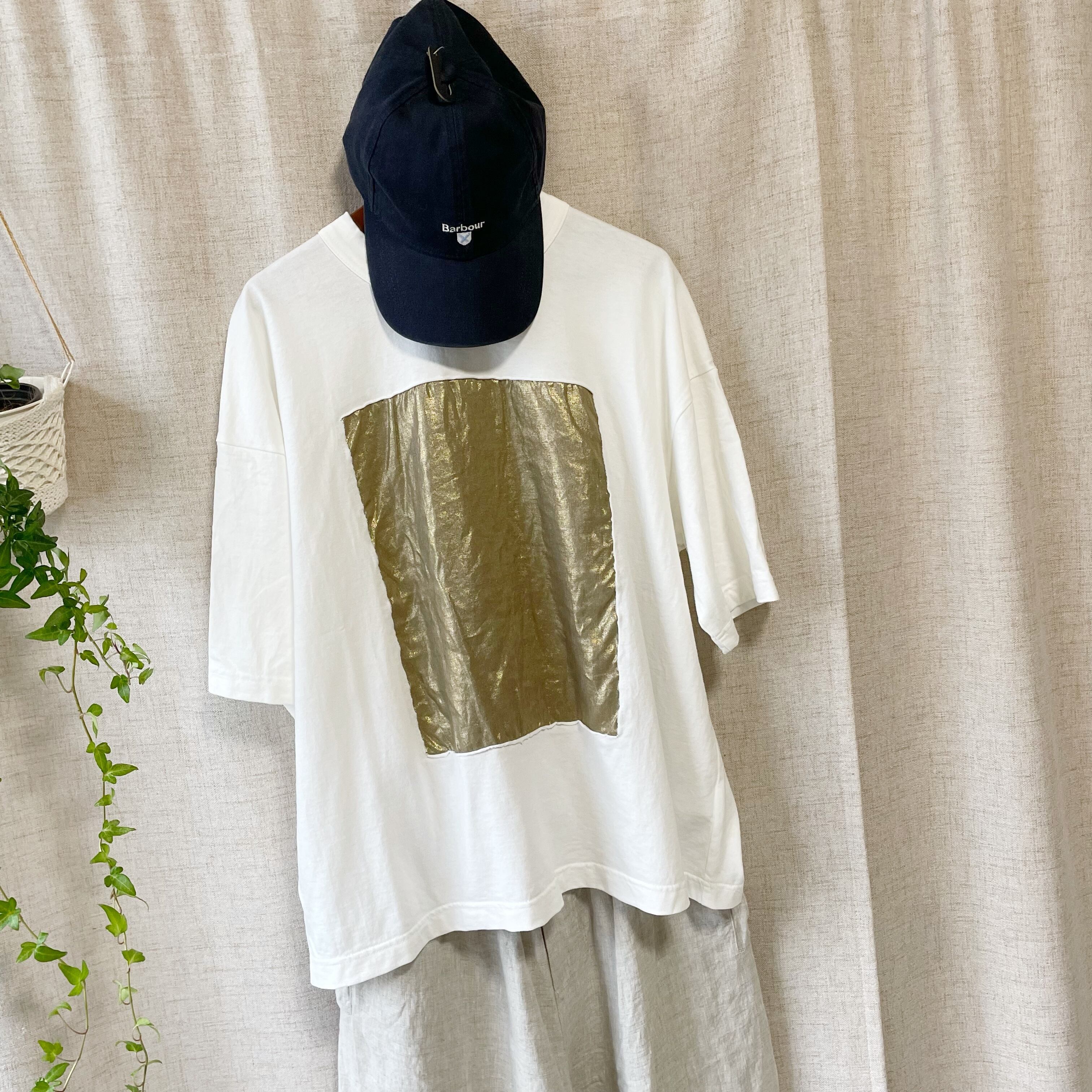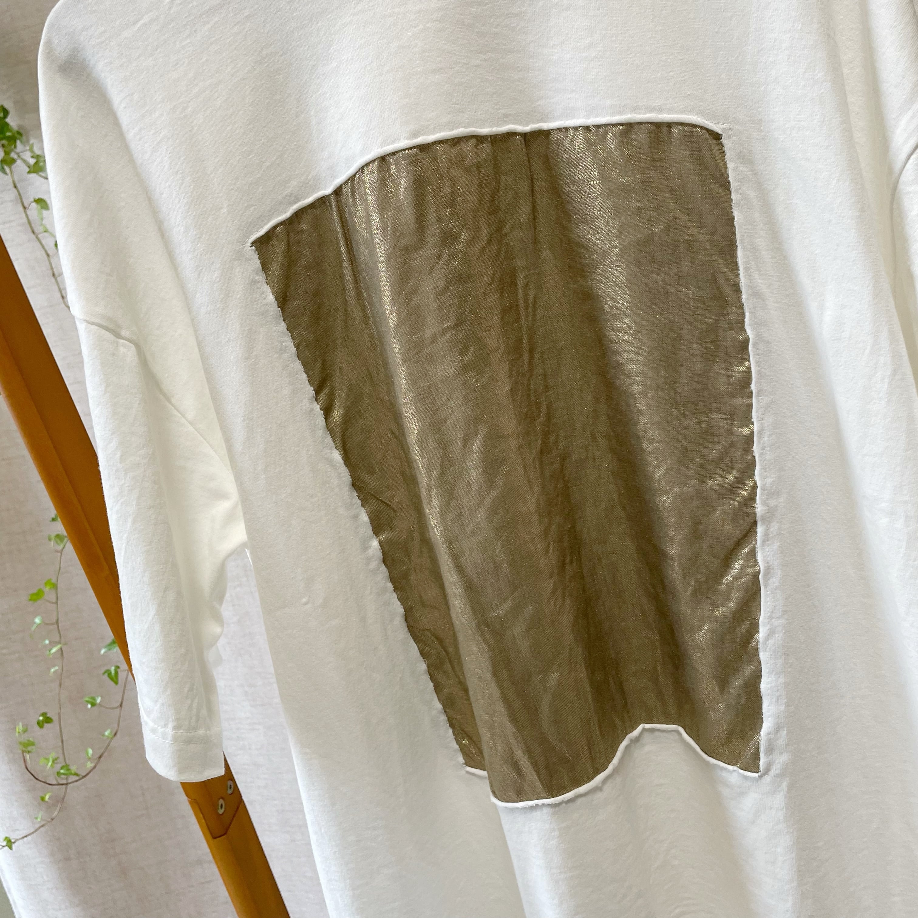 ※箔プリントは摩擦や洗濯の繰り返しで徐々に脱落し、光沢感が薄れていく場合がございます。風合いの変化は予めご了承ください。洗濯機を使用する場合は、箔プリント部分が他の衣類とこすれないように、裏返してネットに入れて洗うことをお勧めいたします。