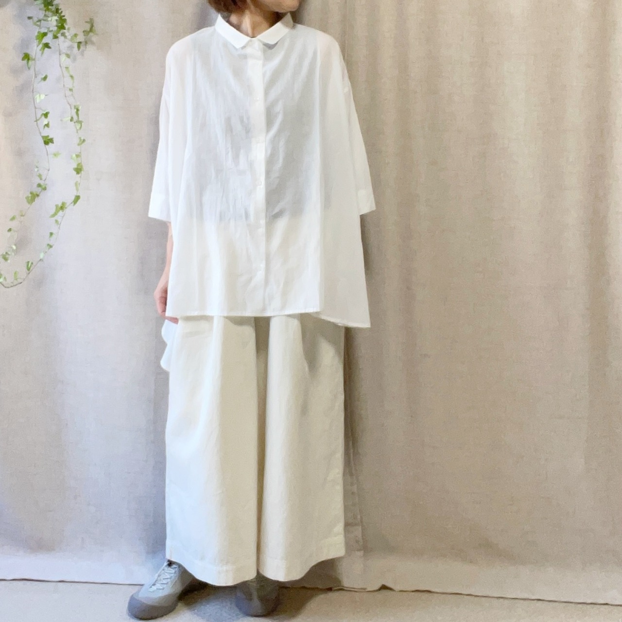 軽やかなコットンシアー素材で仕立てたコットンシアーブラウス 。