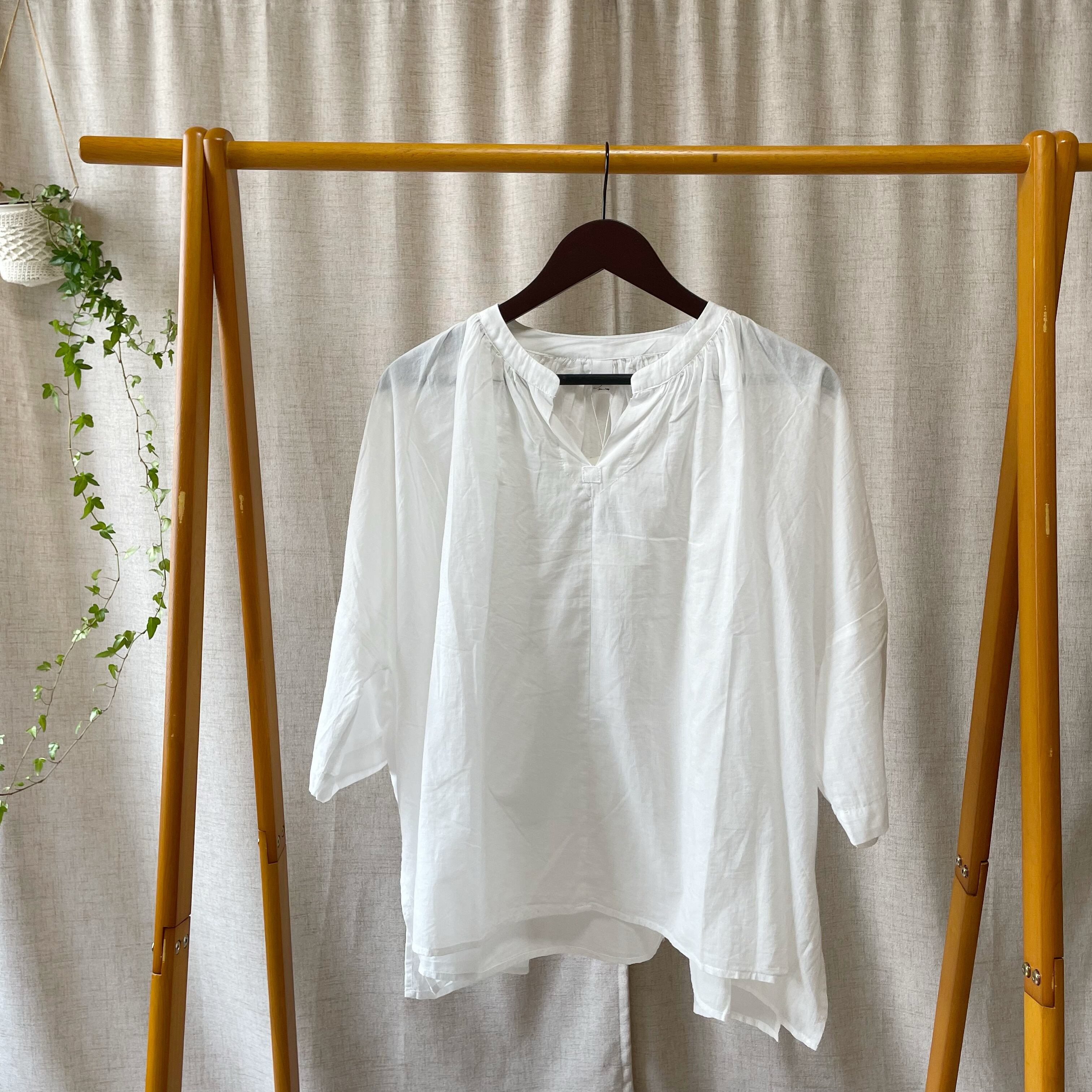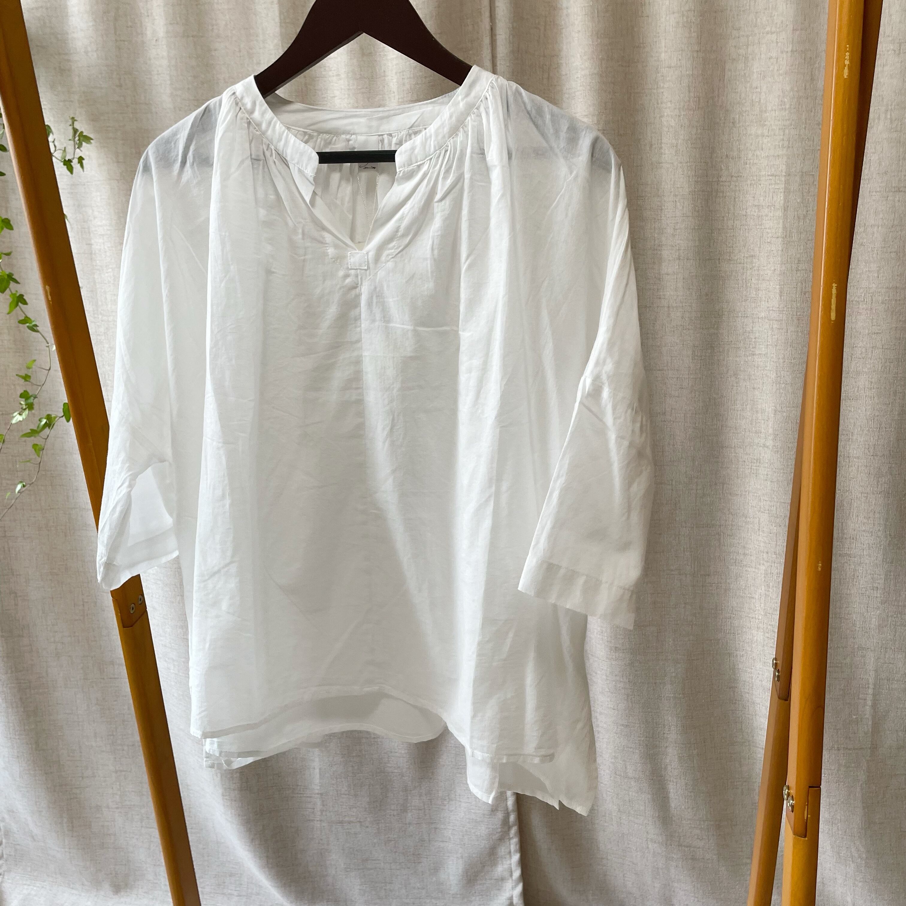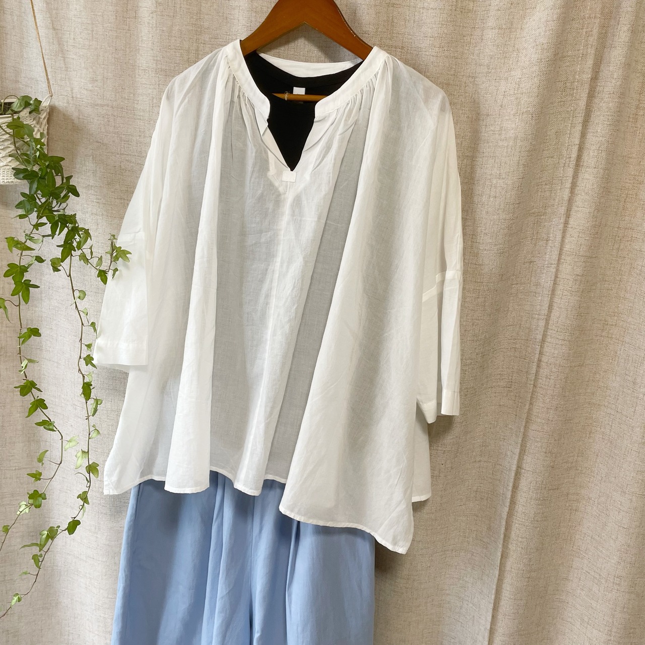 軽やかなコットンシアー素材を使用した コットンシアープルオーバーシャツ 。
