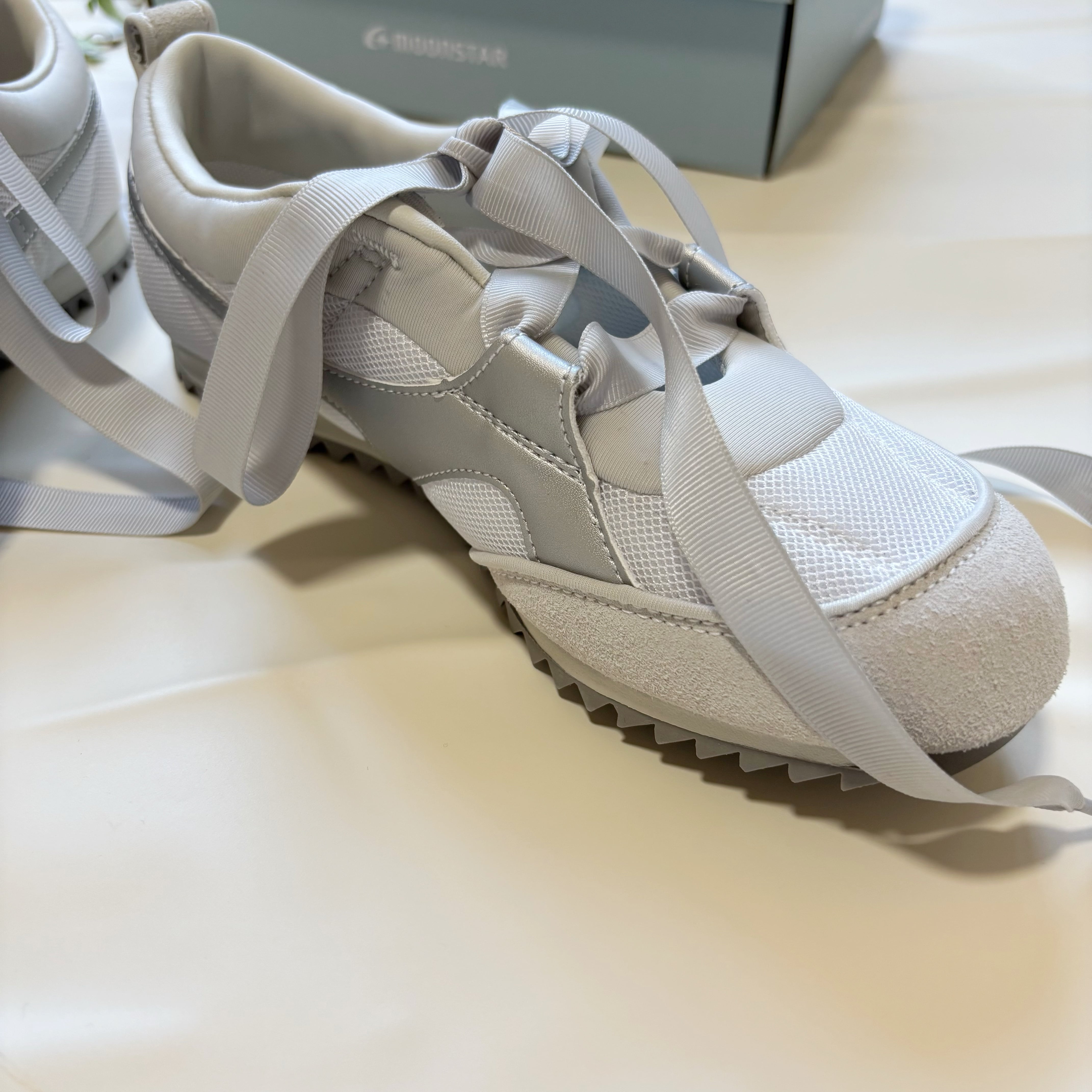長く学生に親しまれてきたスポーツシューズ、ジャガーシリーズをベースに上履きの原型となったバレエシューズのディテールを取り入れたモデルです。