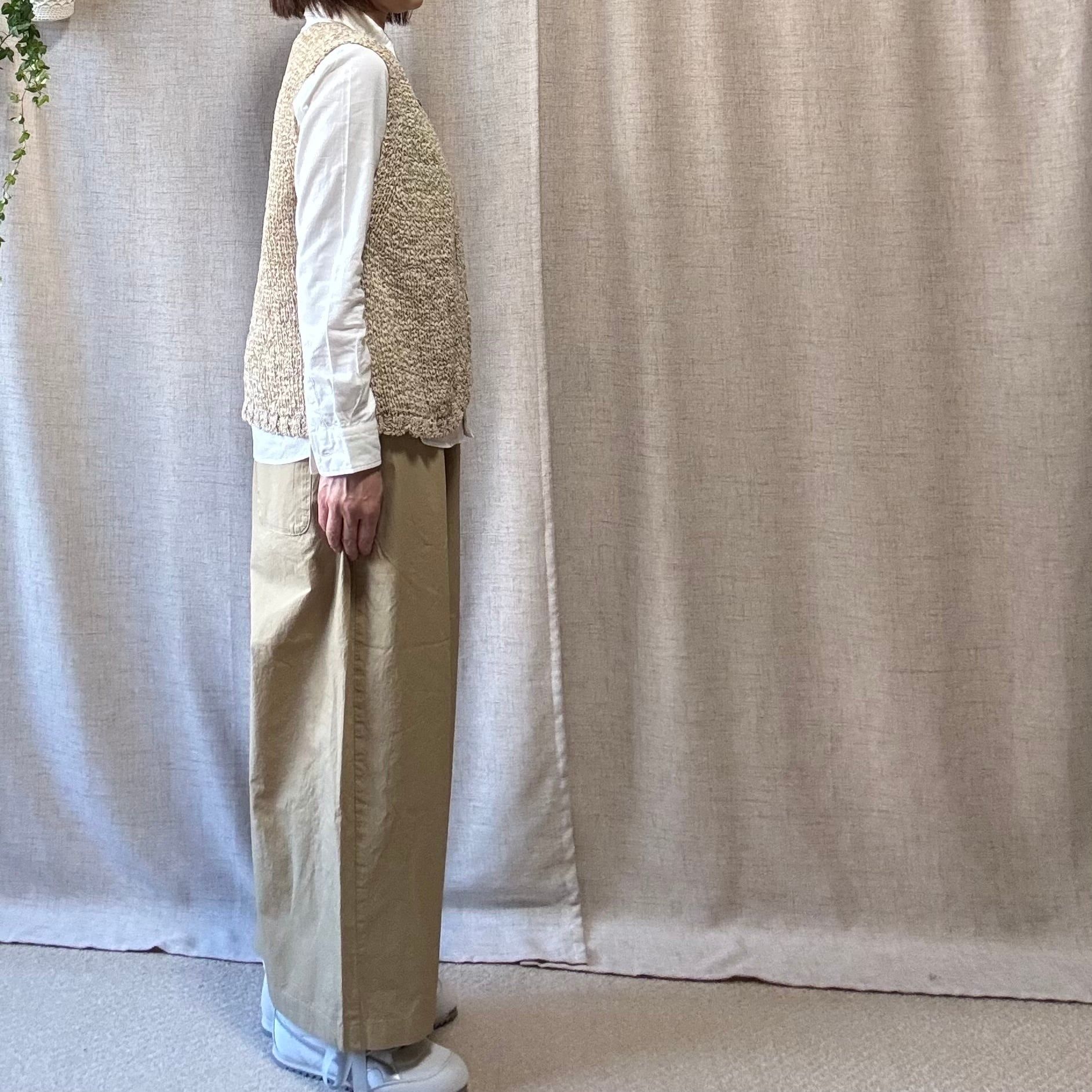 オーガニックコットンを使用しているため、肌にやさしく、環境にも配慮した一品。ナチュラルなカラーリングは、コーディネートのアクセントとしても活躍し、他のアイテムとも組み合わせやすいです。