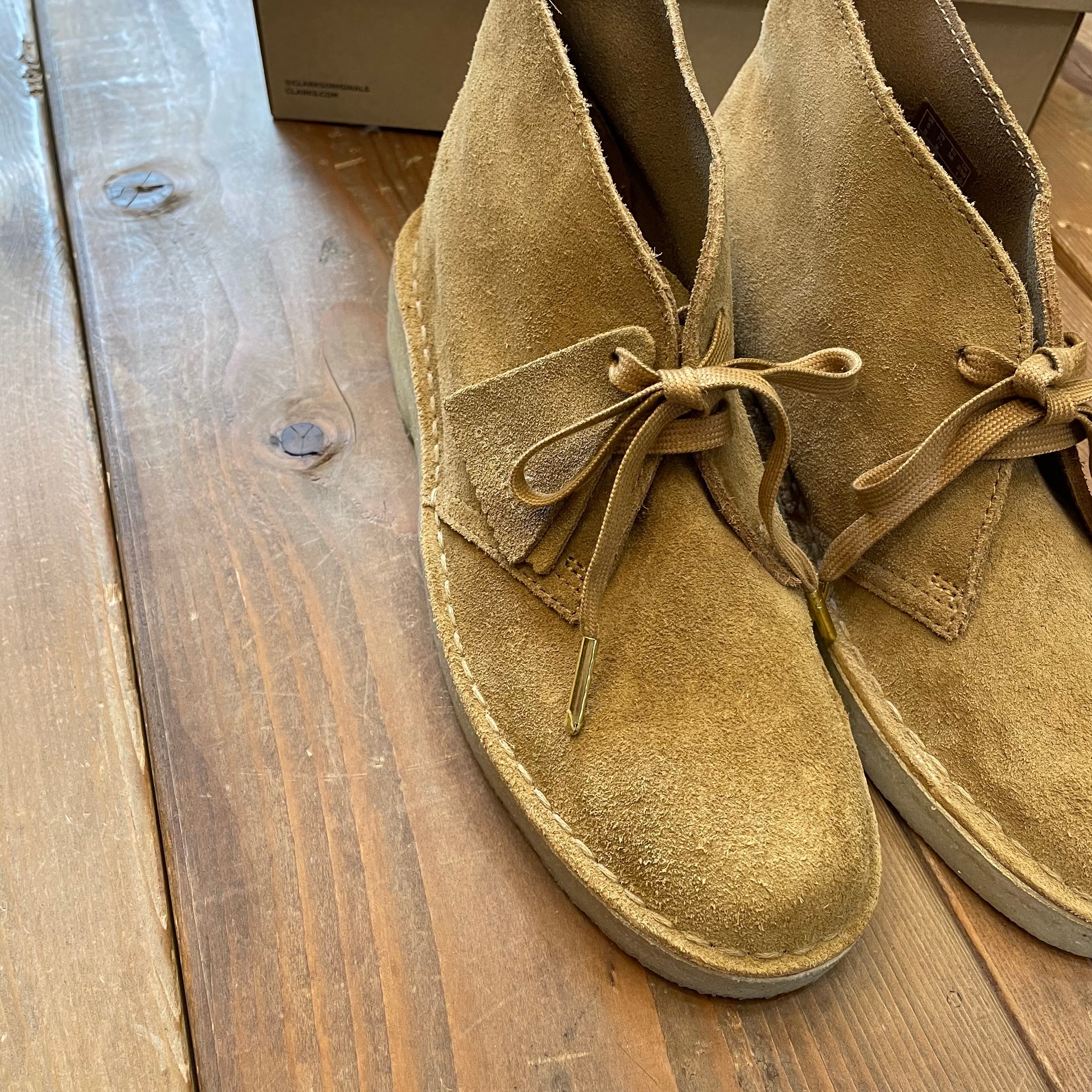 1950年の発売開始以来、常にカジュアルシューズをリードしてきた英国を代表する靴であるデザートブーツ。飽きのこないシンプルなデザインは第二次大戦中、英国陸軍に従軍していた「ネイサンクラーク」によるものです。アッパーは着用頻度を重ねるほどに柔らかさを増していくカウレザー、天然ゴムから作られたクレープソールの柔軟な履き心地も特長です。