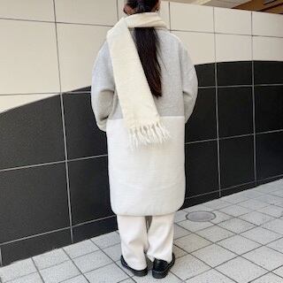 膝までカバーするロング丈で温かく、ワンピースやロングスカートとの組み合わせもおススメです。