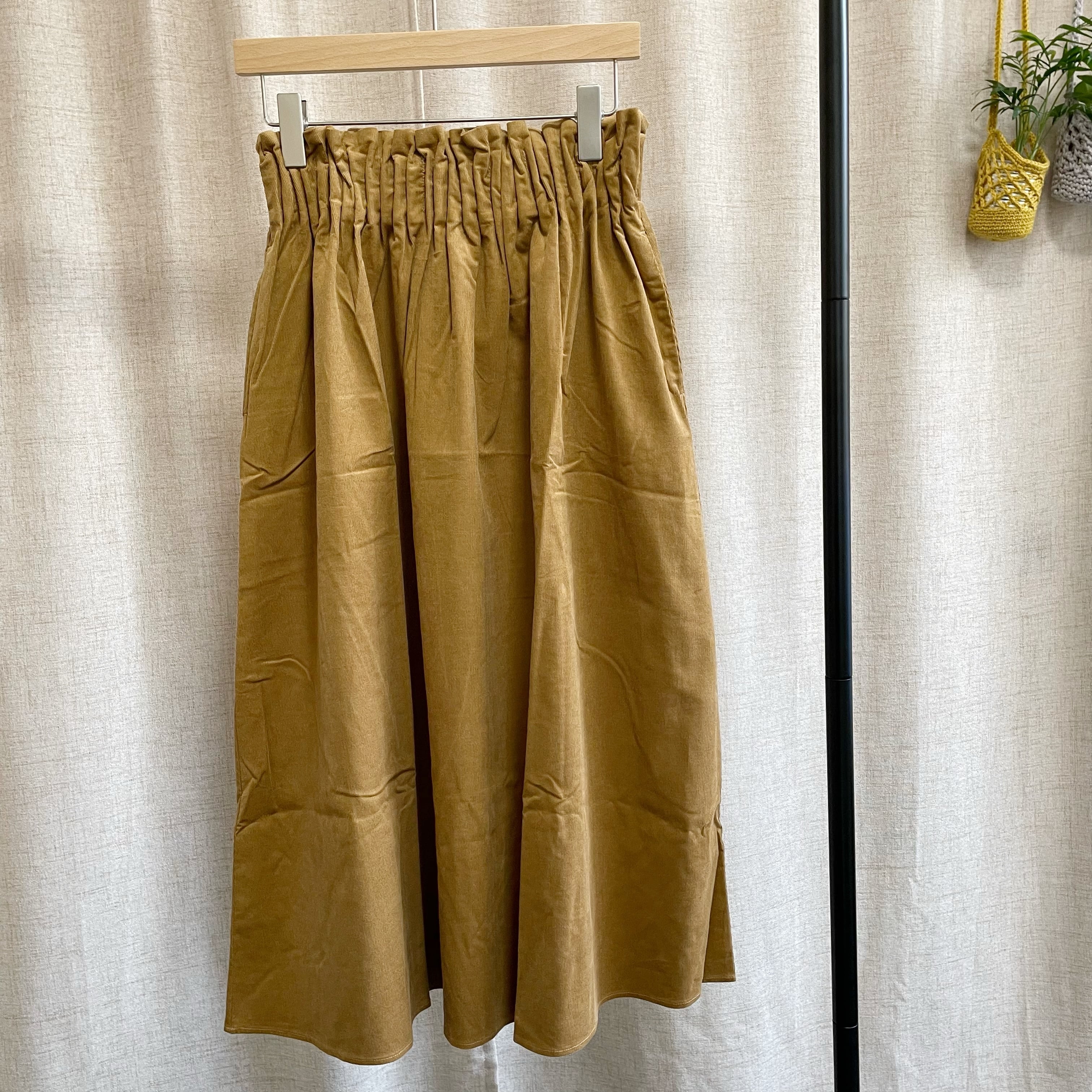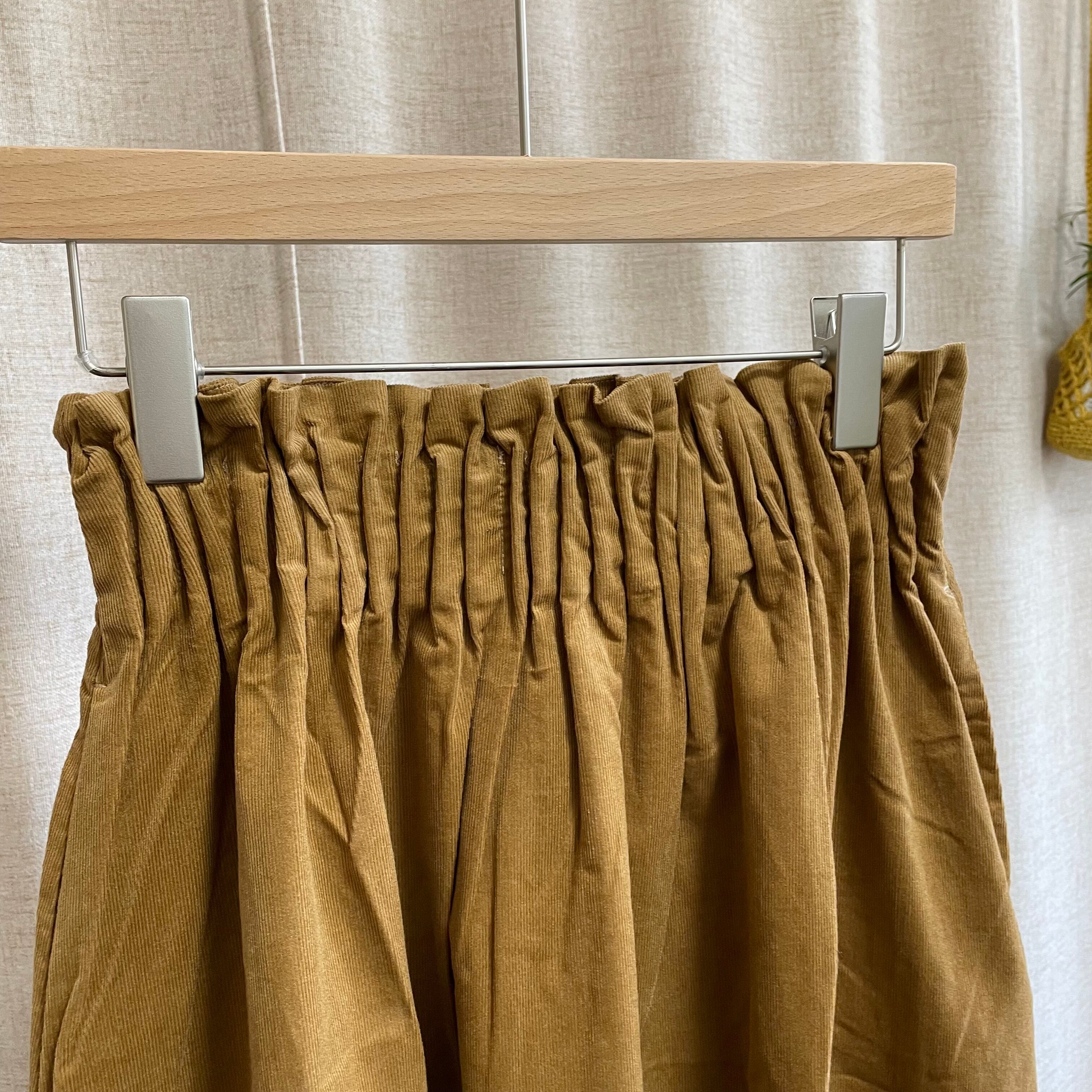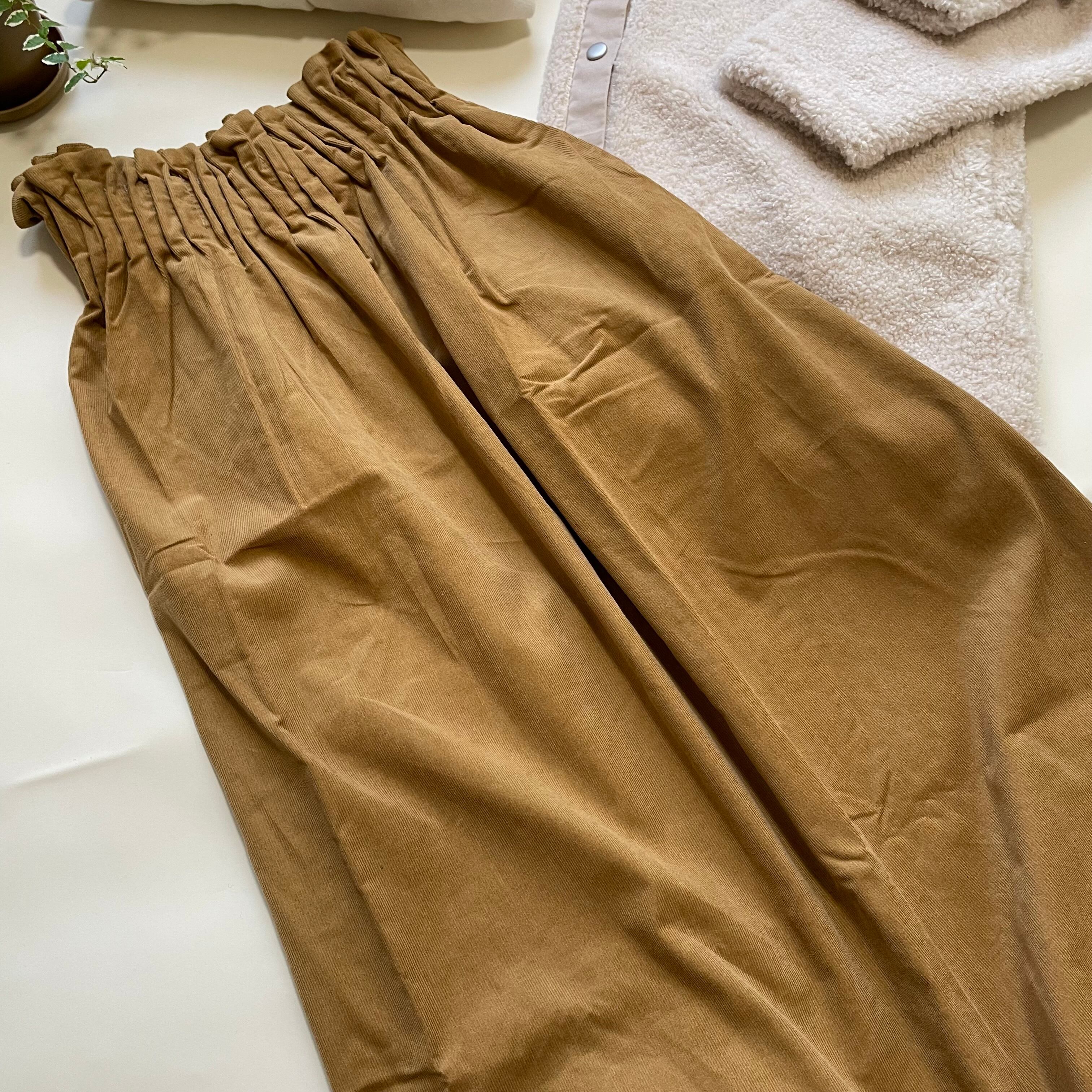 ハイウエストで、贅沢にギャザーがたっぷりと入ったデザイン。