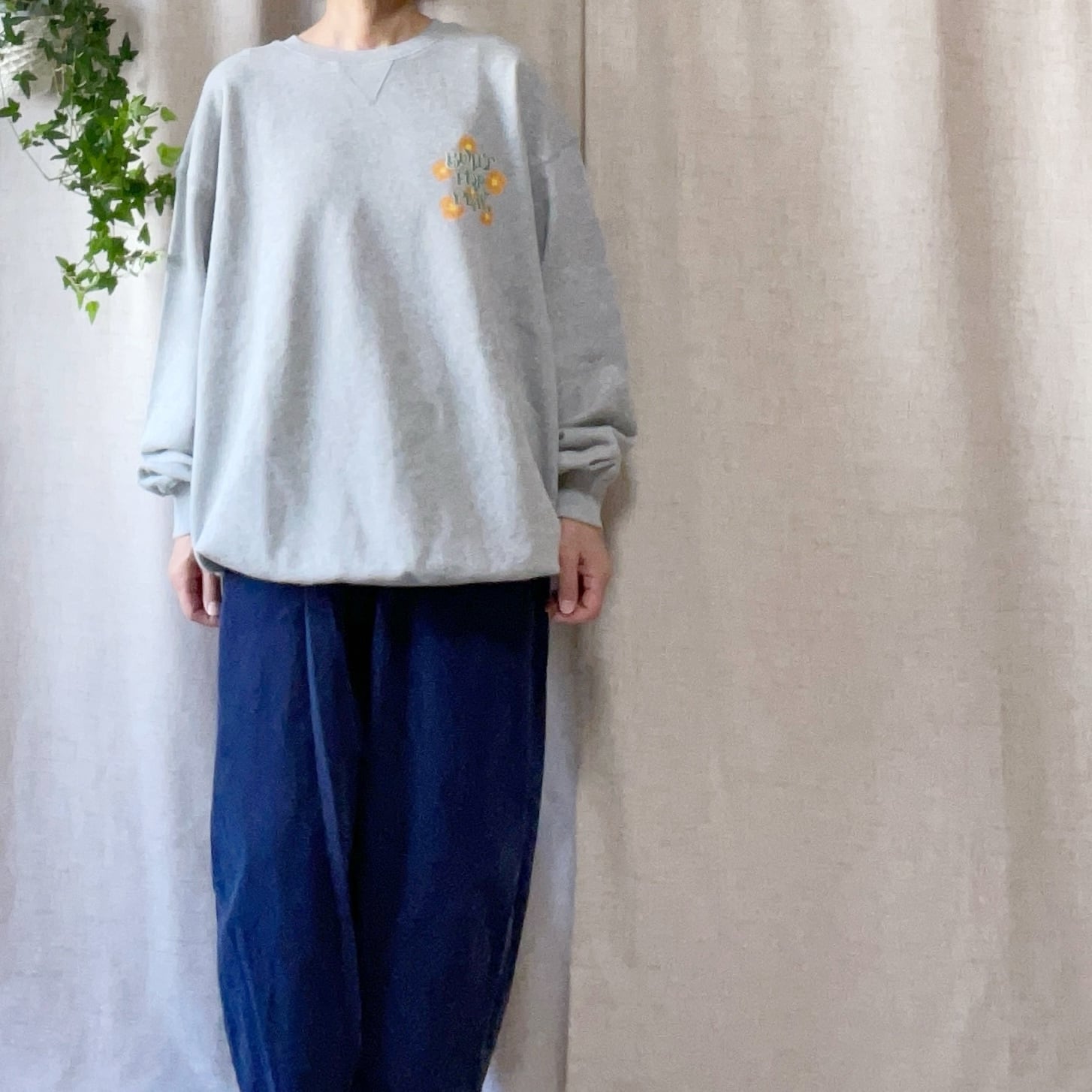 長めの着丈なので、デニムやカーゴパンツと相性よいです。ロングスカートに合わせるのも◎