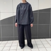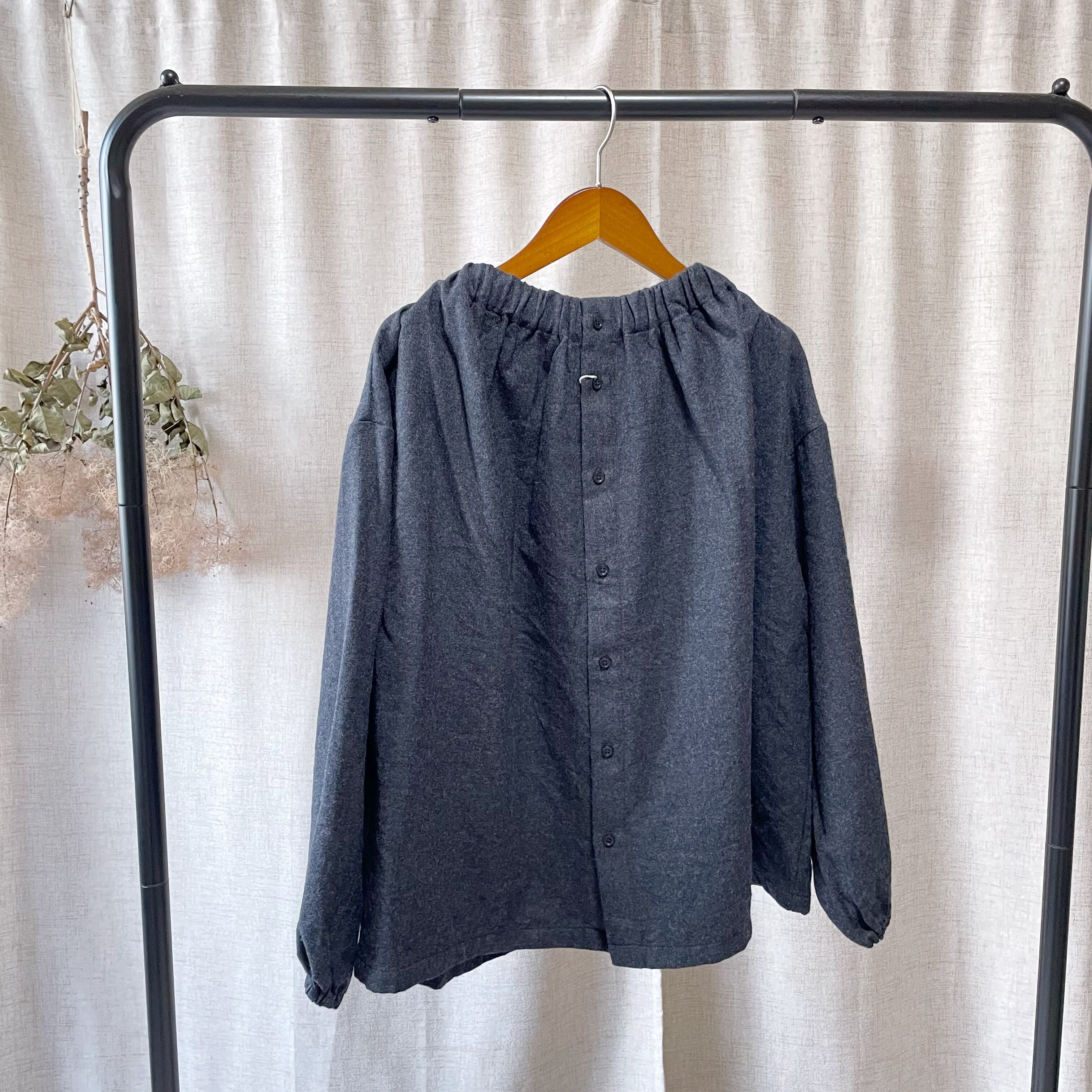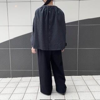洗い加工を施しやわらかな肌触りに仕上げた、ウール100%生地のブラウスです。