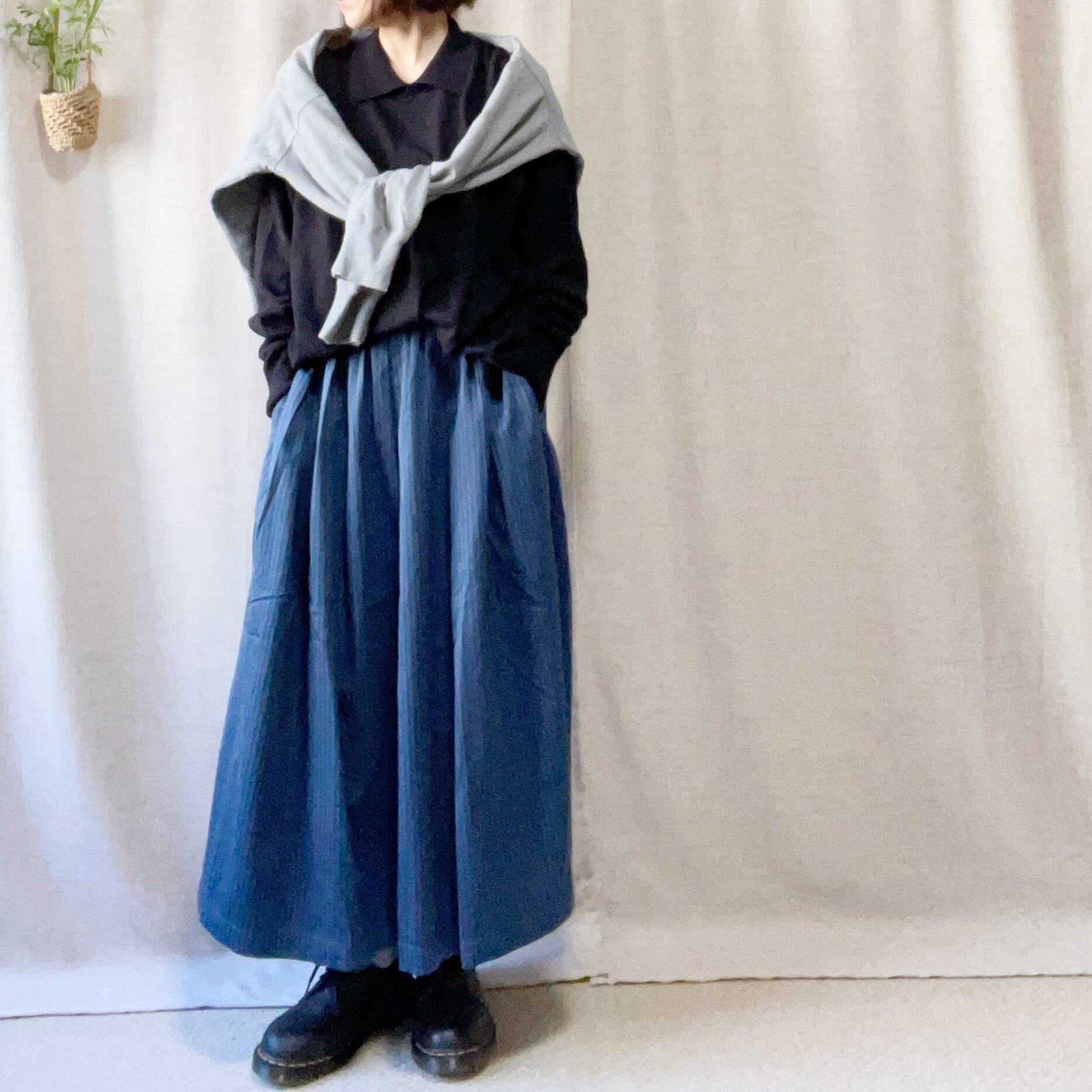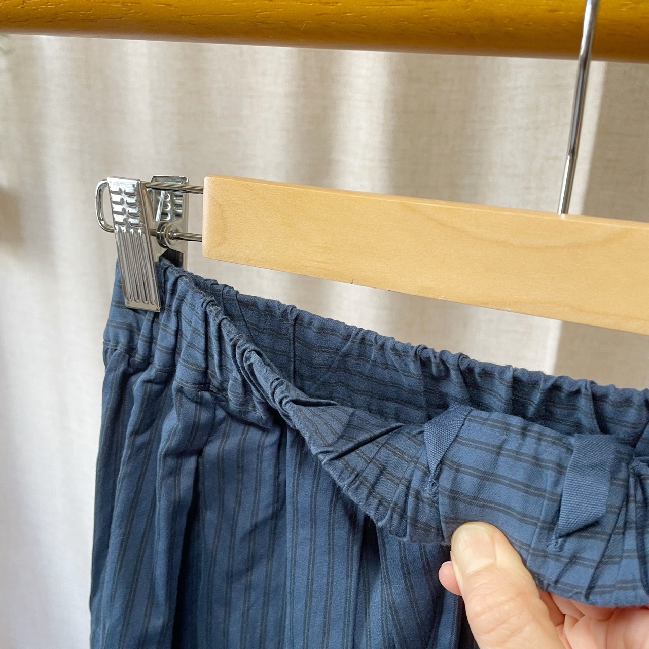 ウエストはゴム、紐で調節できます