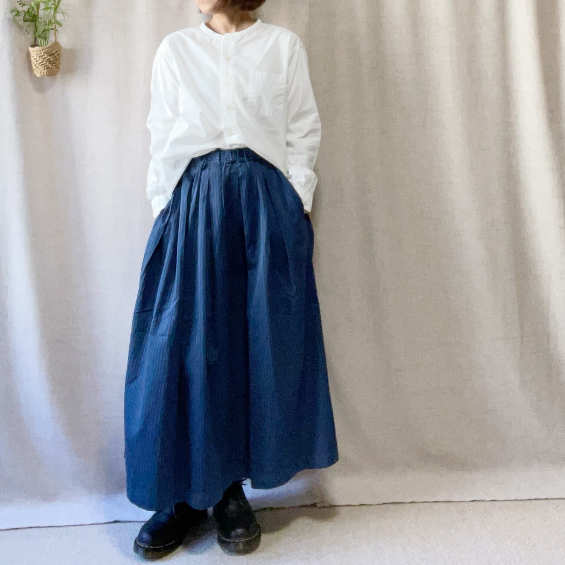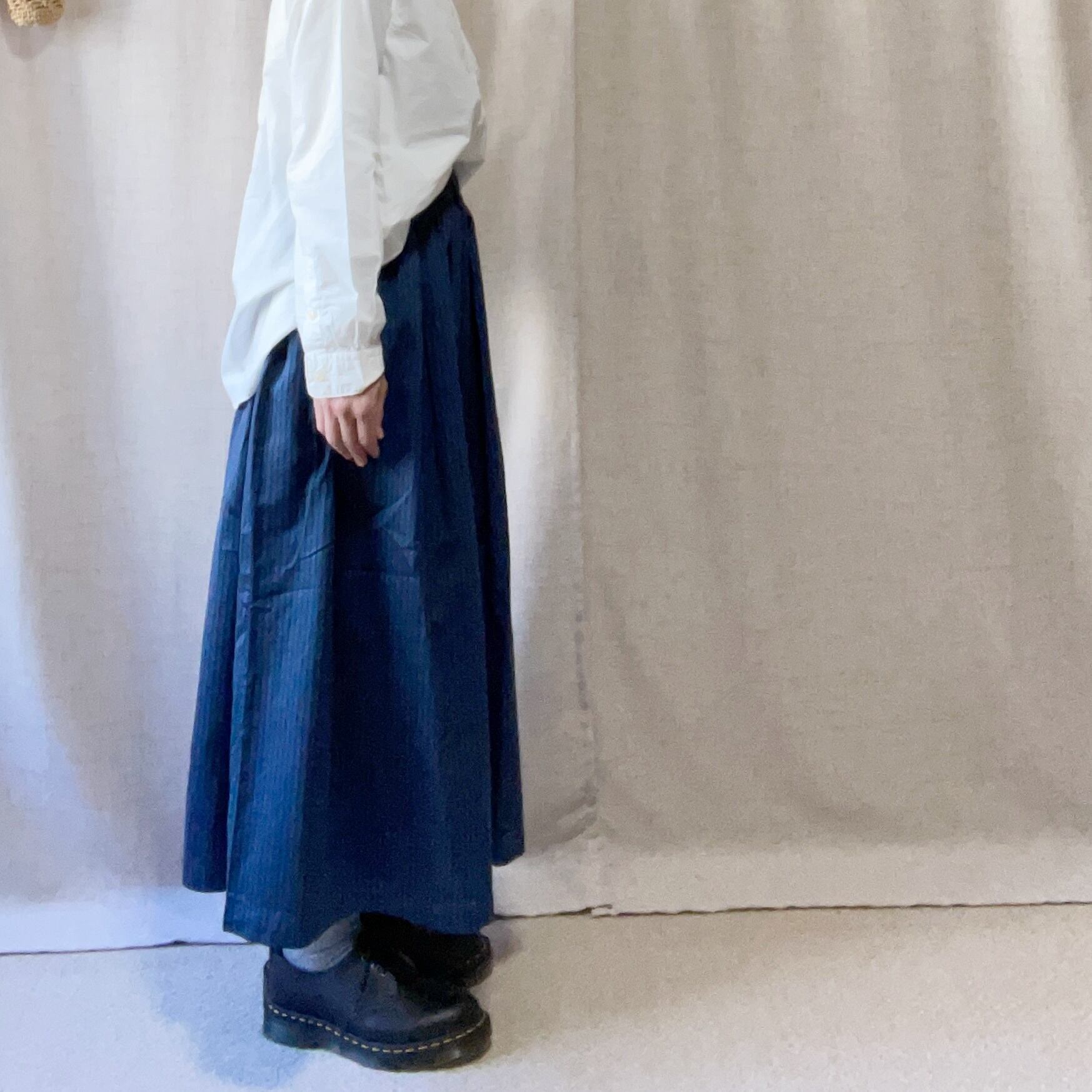 滑らかなコットン素材で作られたタックスカート。