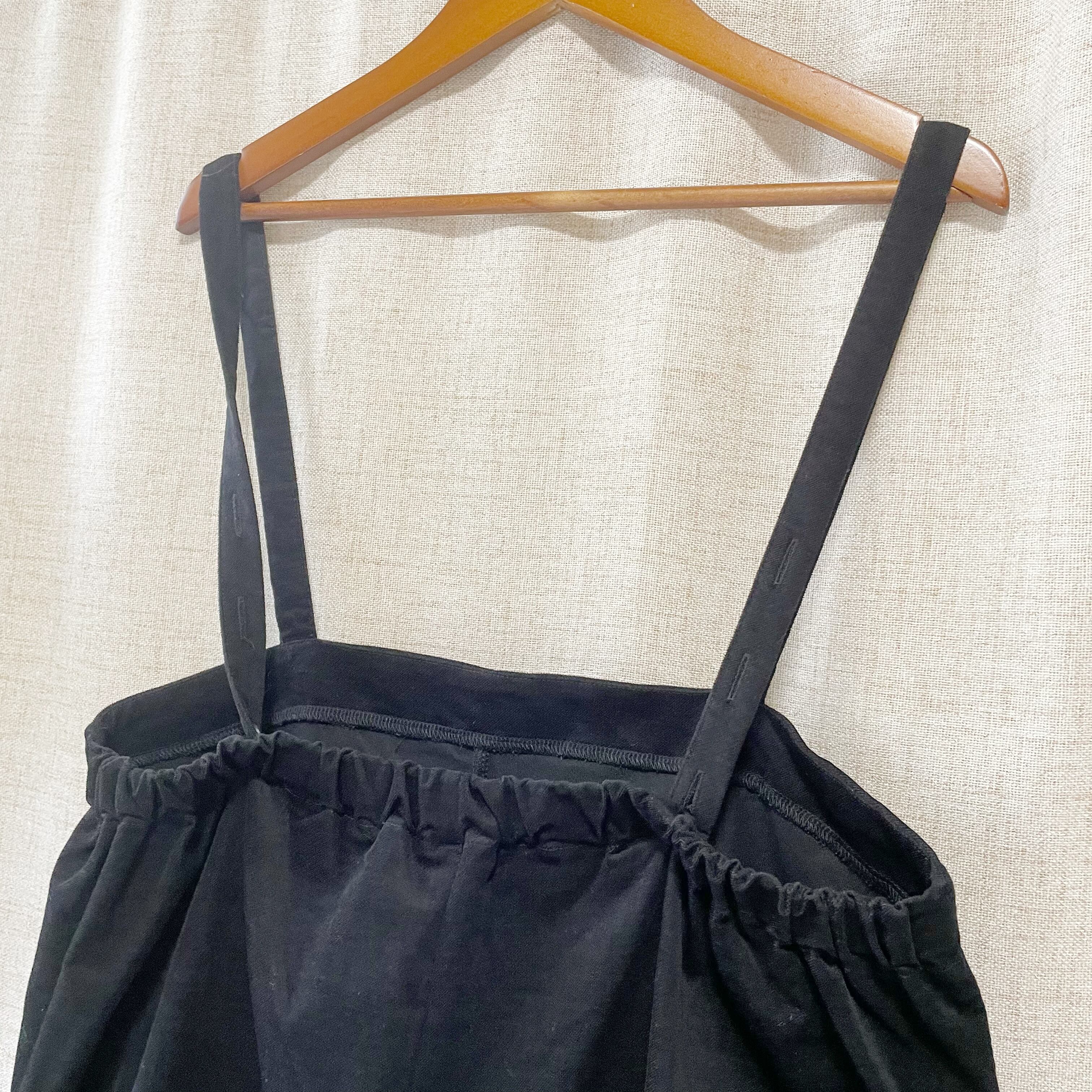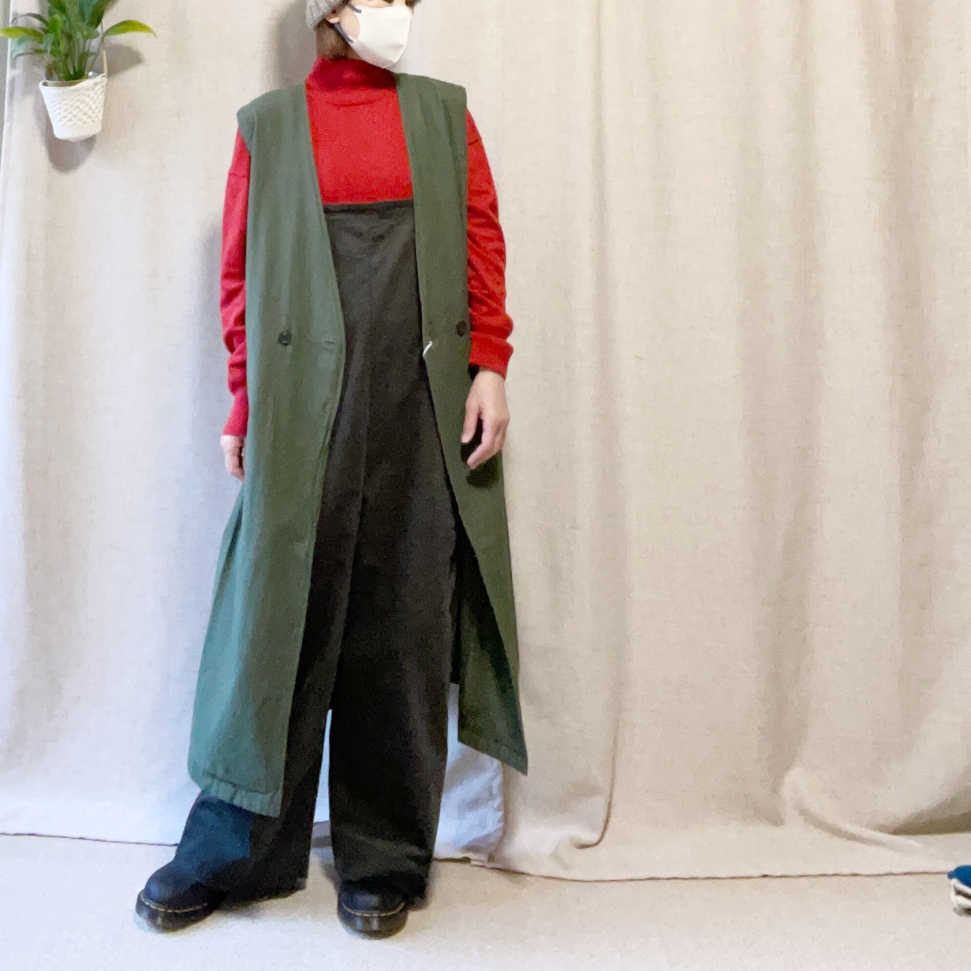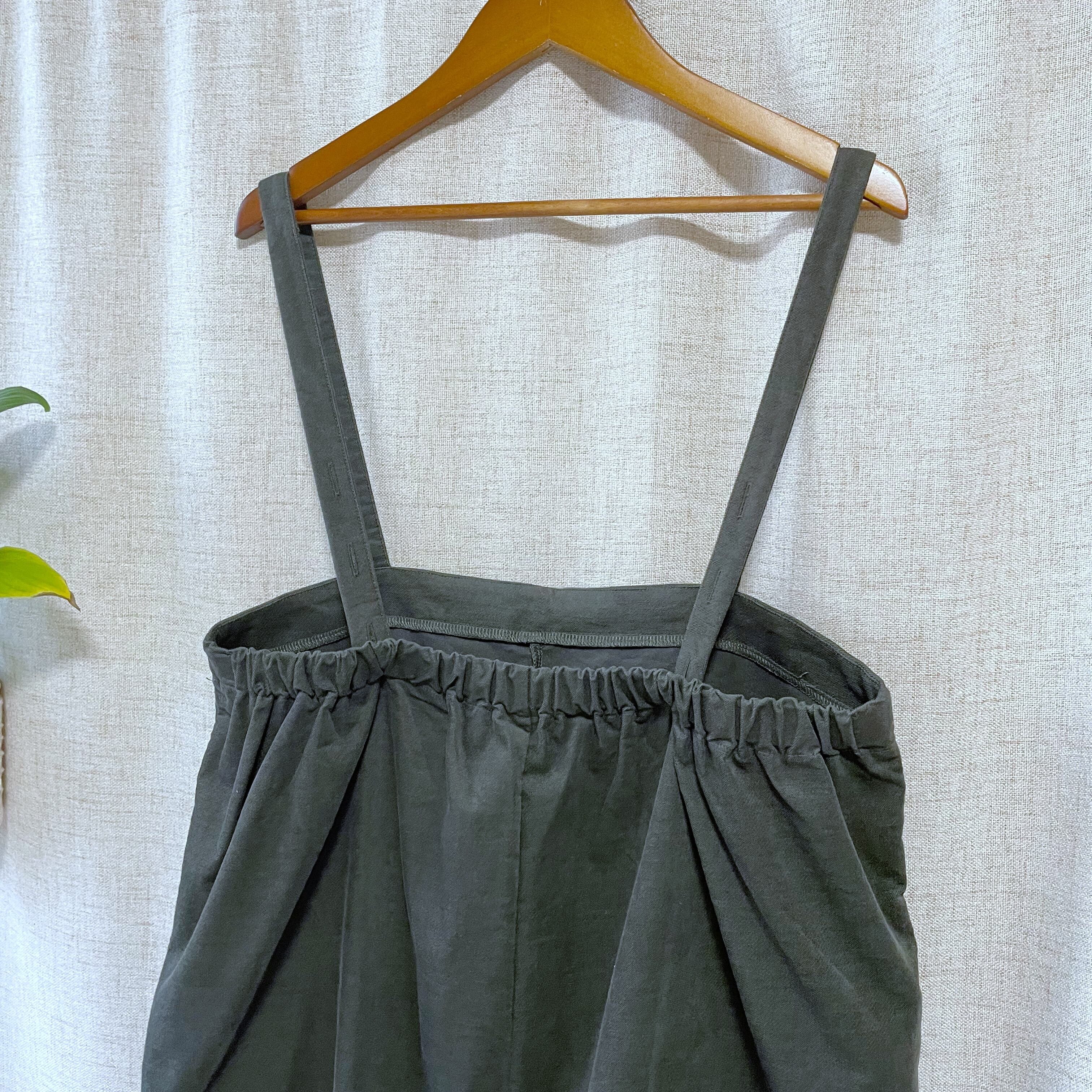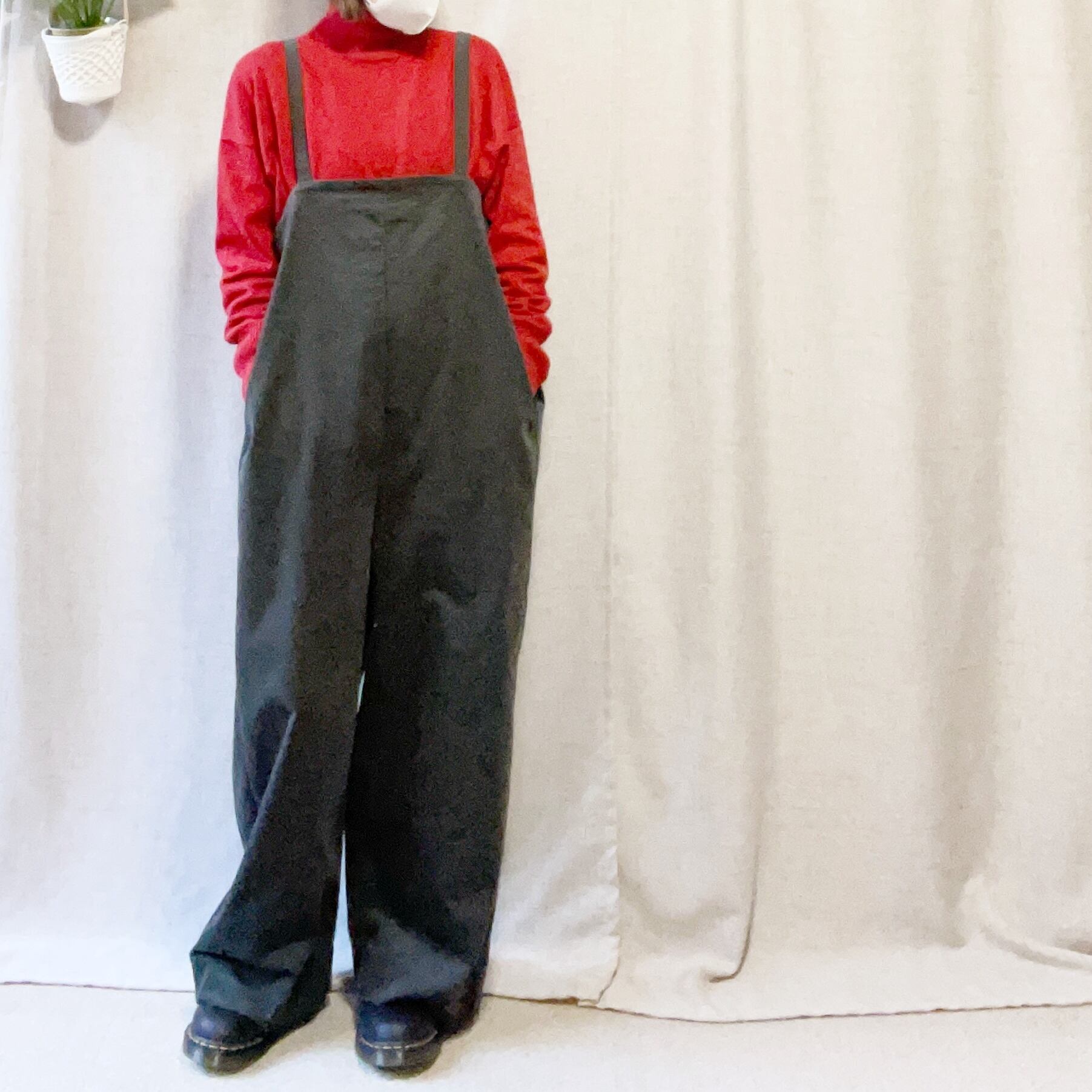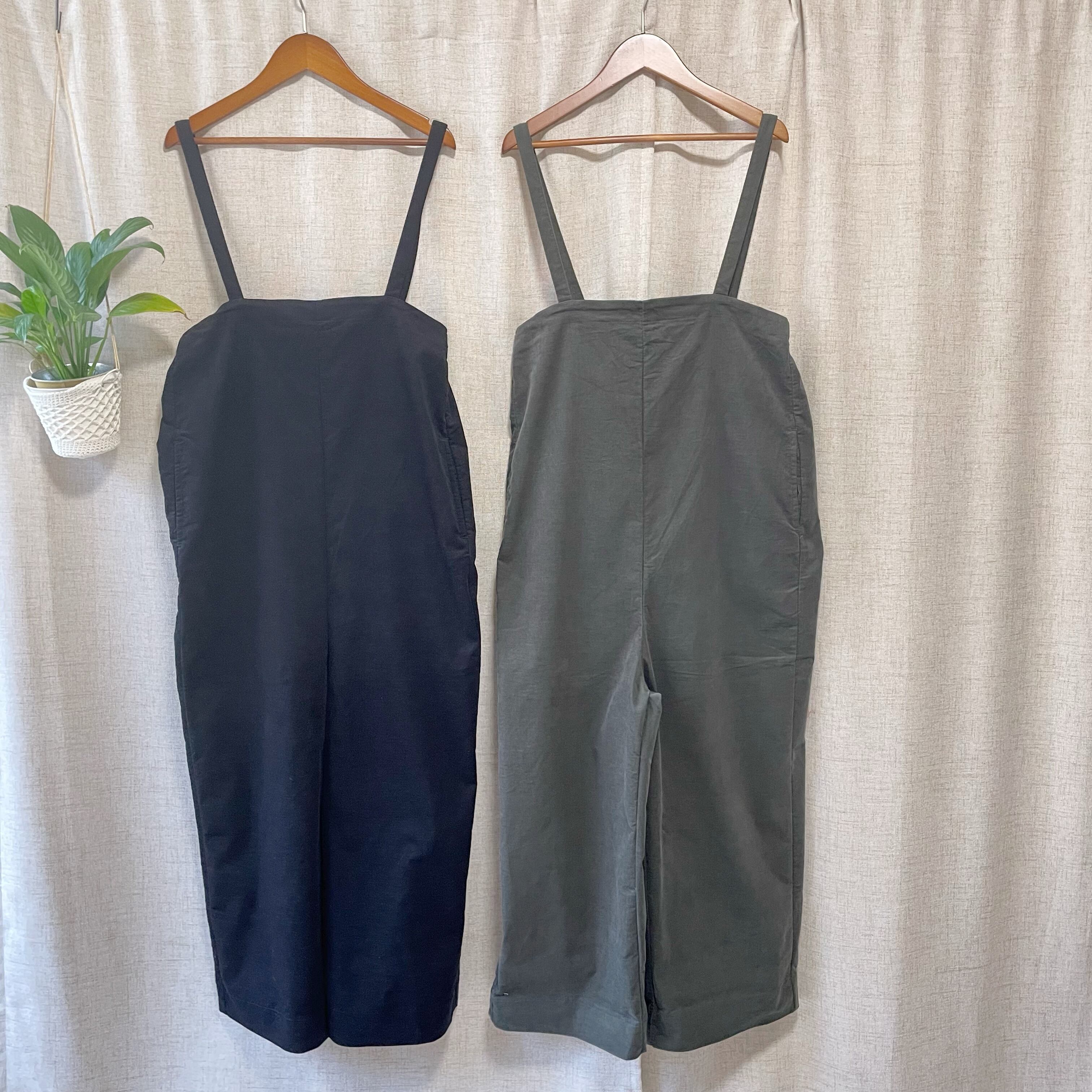 横方向にストレッチが効き、履き心地のよいサロペット。