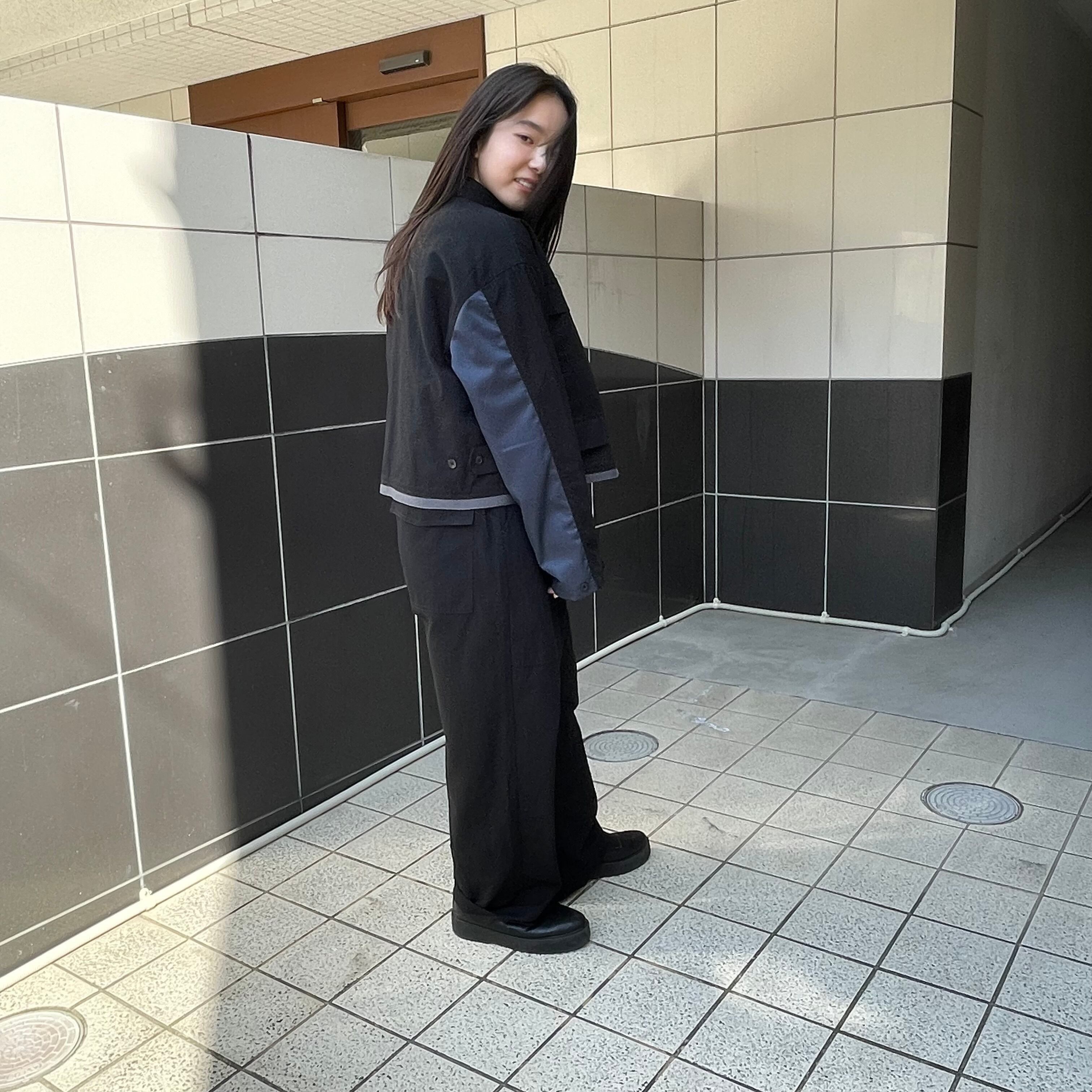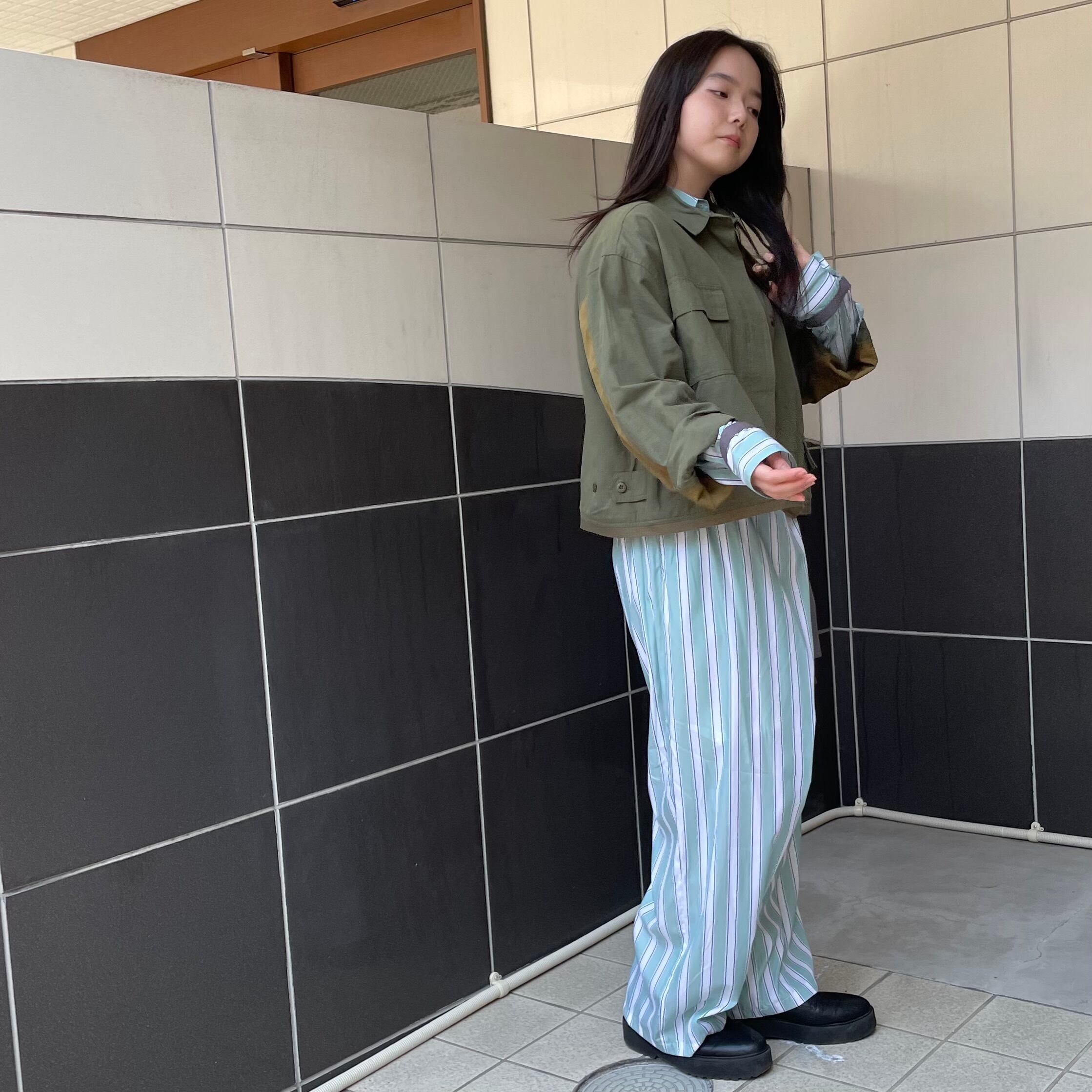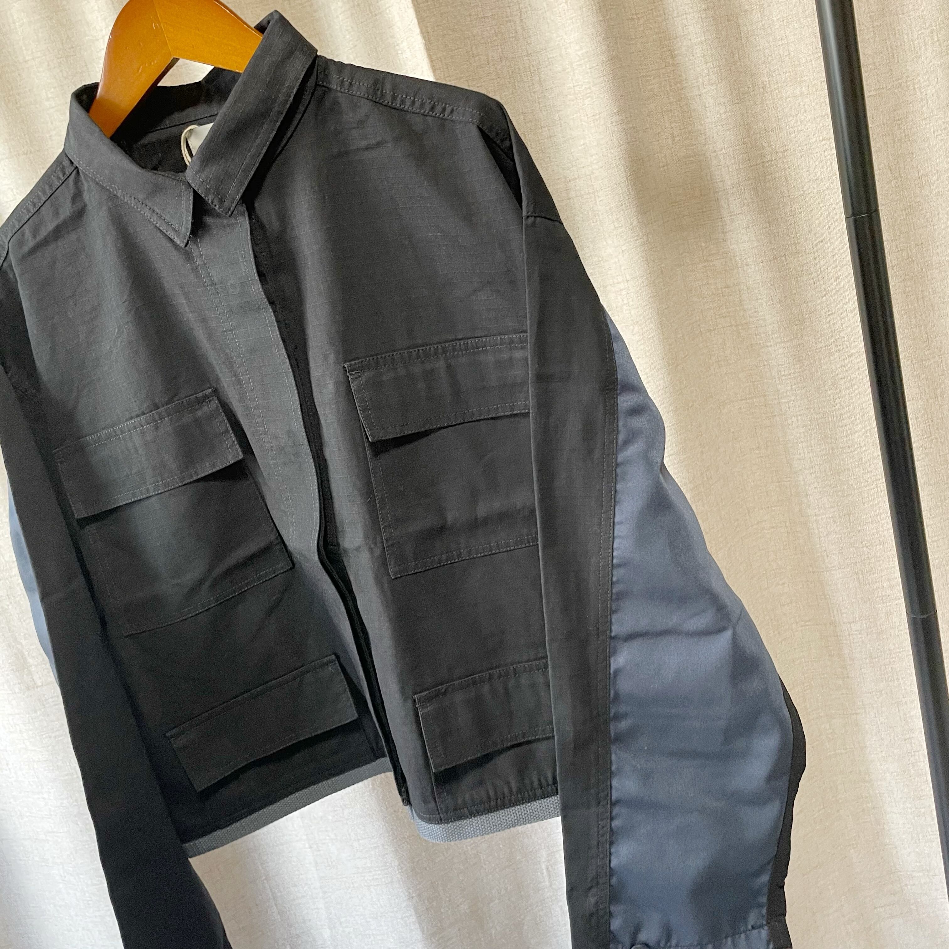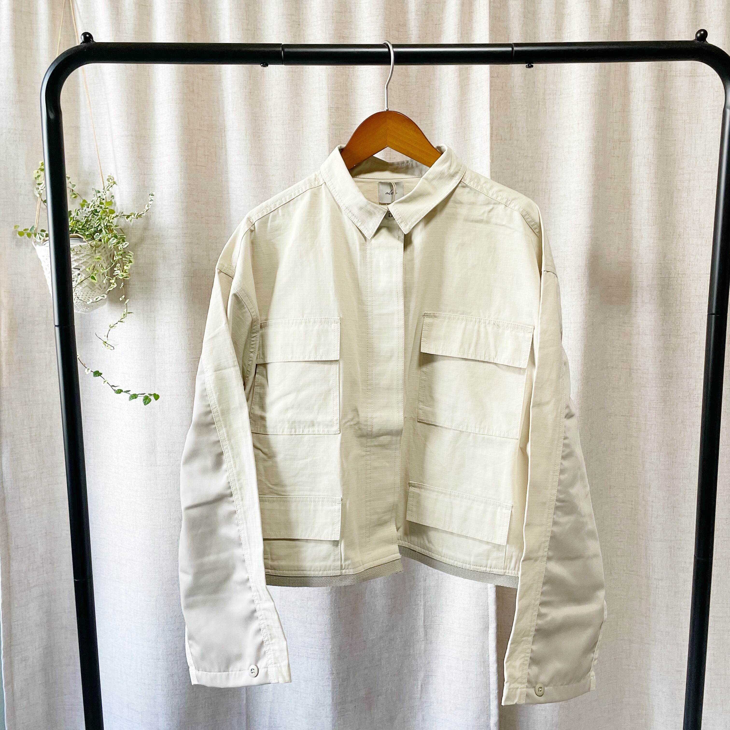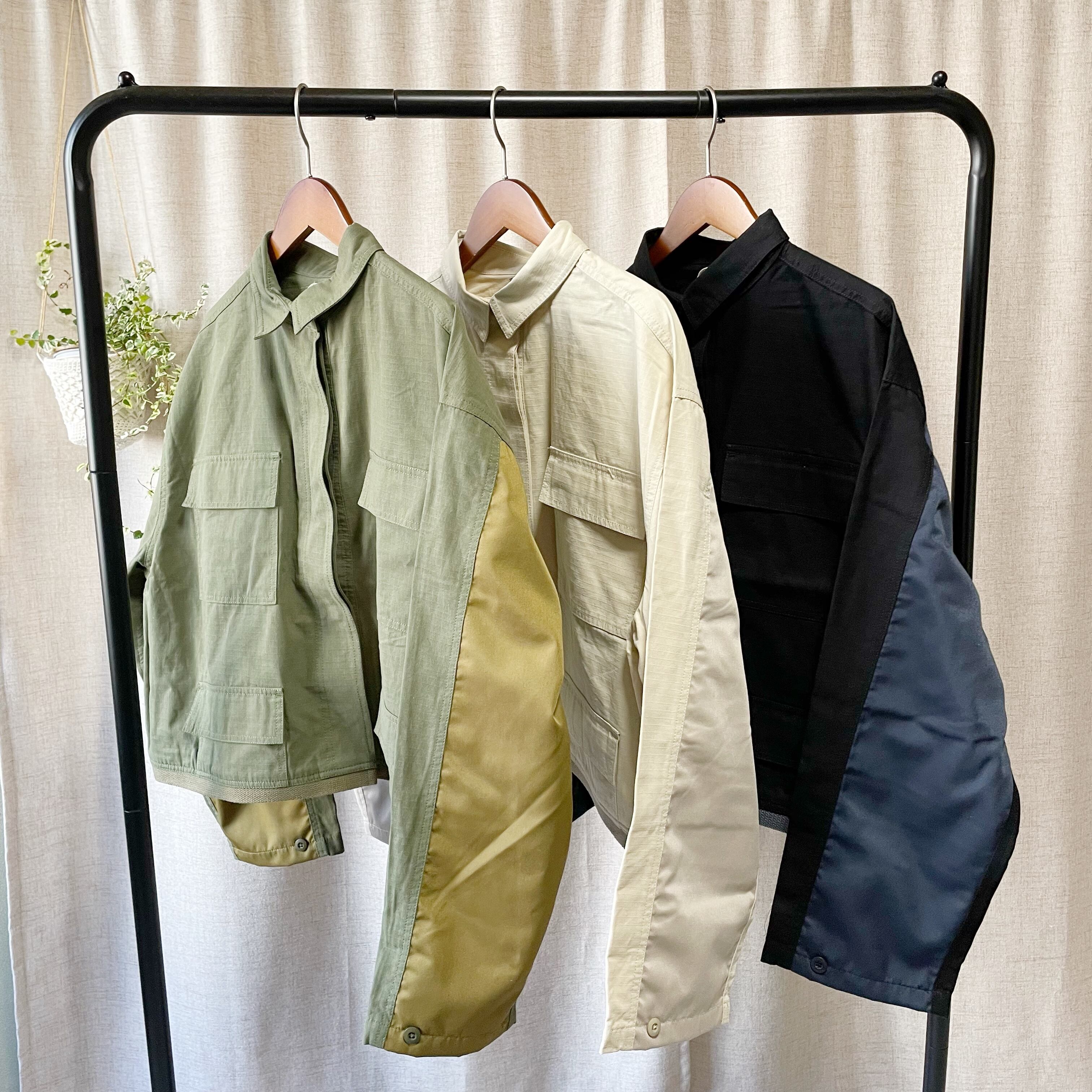 ミリタリーシャツをリメイクしたようなデザインアウター。